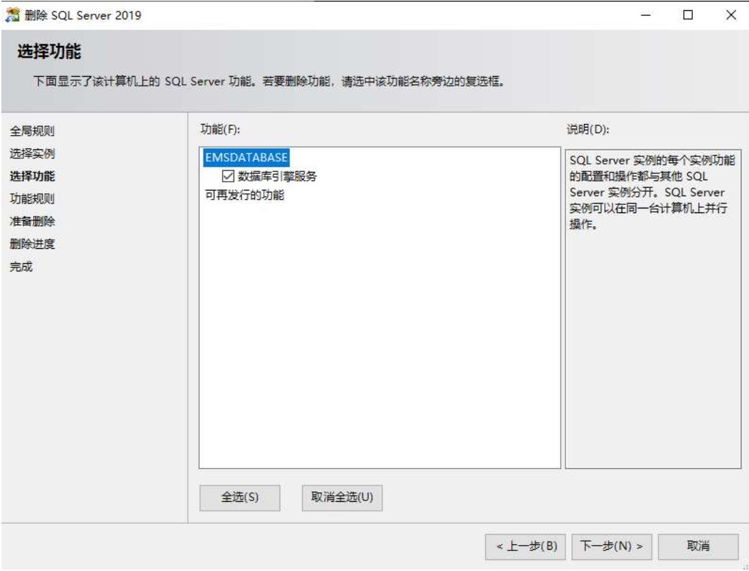 從控制面板卸載 “Microsoft SQL Server 2019 (64bit)”,卸載時(shí)打勾 EMSDATABASE 的 “數(shù)據(jù)庫引擎服務(wù)”。