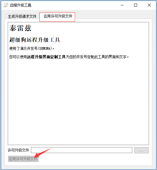 在客戶電腦上打開之前生成的RUS軟鎖安裝工具,選擇【應用許可升級文件】項