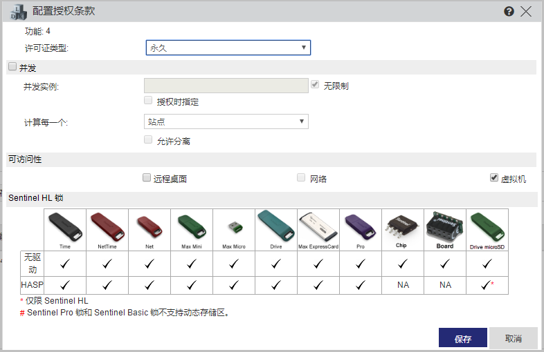 配置里面涉及到的有些功能,如到期時間,網絡并發數等需要特定的加密鎖才能支持。比如到期時間只有time鎖和max鎖支持,網絡并發只有net鎖支持。