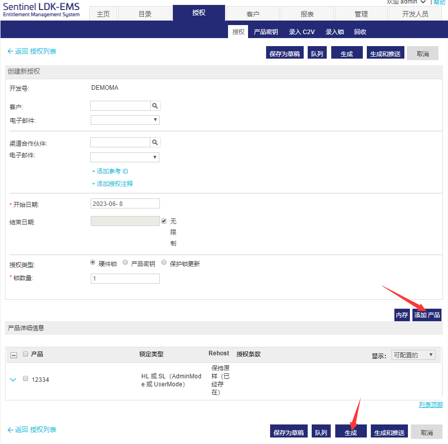 上面只需要填同一批次需要燒鎖的數量,其它可以不填,然后“添加產品”,把之前配置好的產品添進來,點“生成”鍵開始燒鎖。